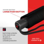 • Der Taschenschirm verfügt über ein modernes schwarzes Gestell aus Stahl und Fiberglas. Bedient wird er leicht per Tastendruck durch die Duomatik-Funktion. Das 8-teilige Dach ist angenehm groß und bietet sicheren Schutz vor Wind und Regen.